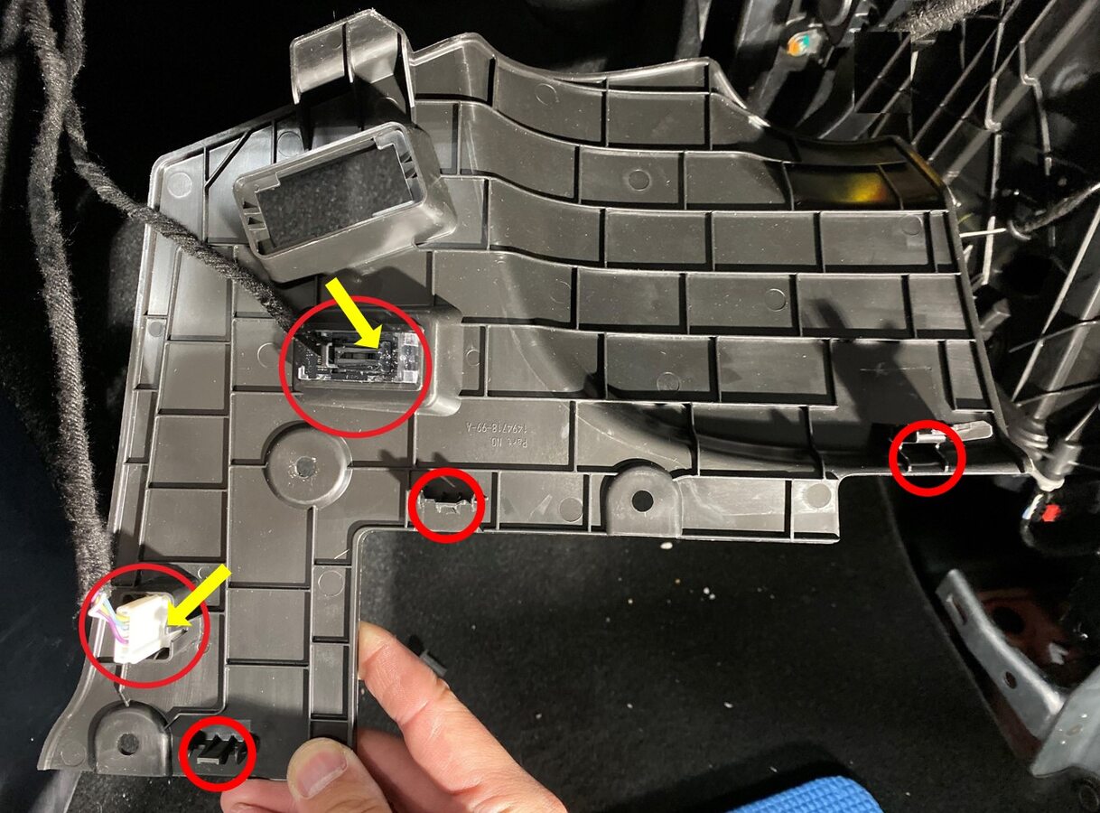 Remove clips securing RH footwell assembly