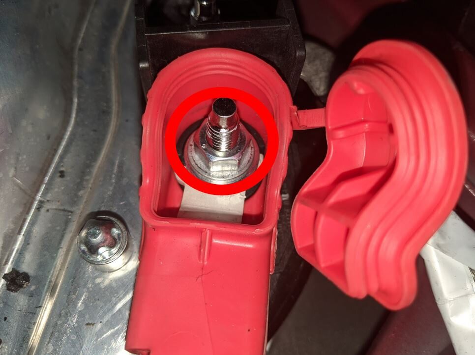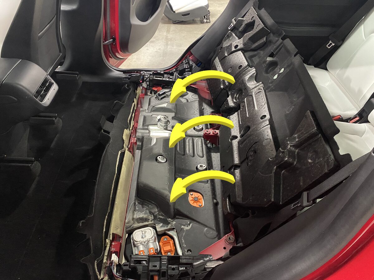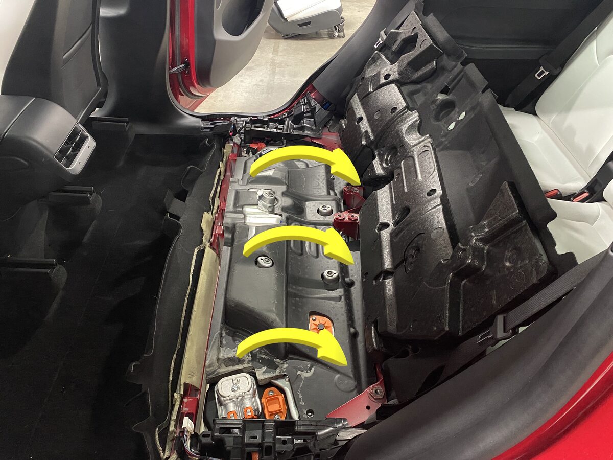 NoteThis will allow access to HV battery bolts at RH front foot well and below RH front seat