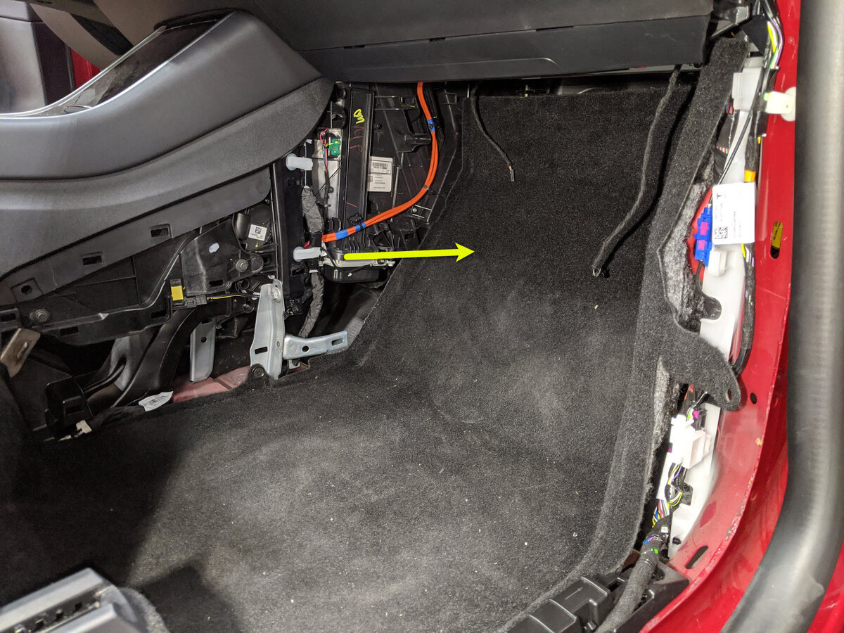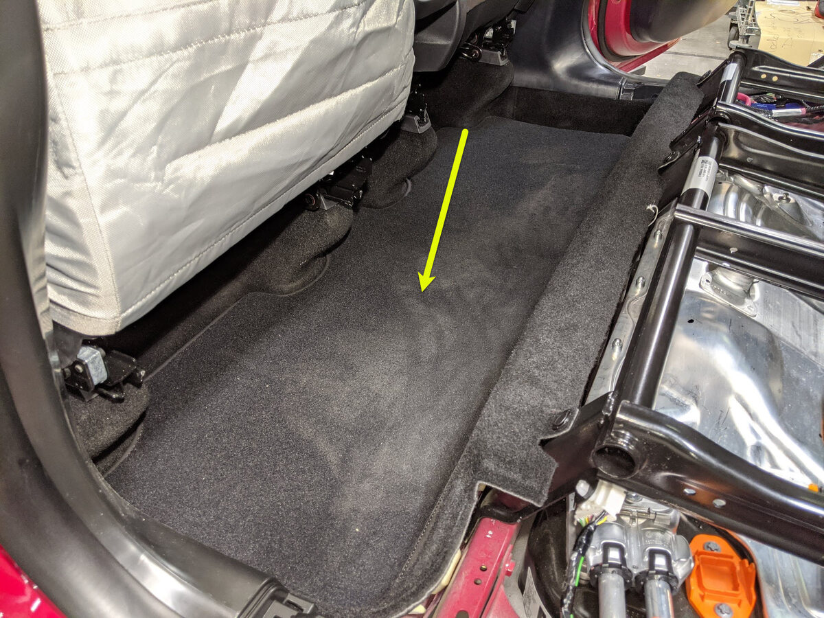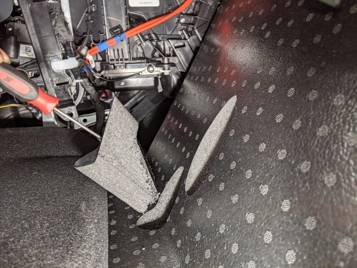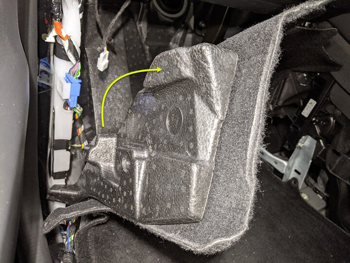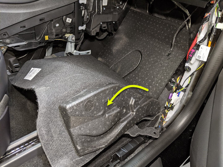 NoteManeuver carpet below brake pedal and accelerator pedal, Newer Vins may be equipped with additional foam installed below carpet