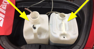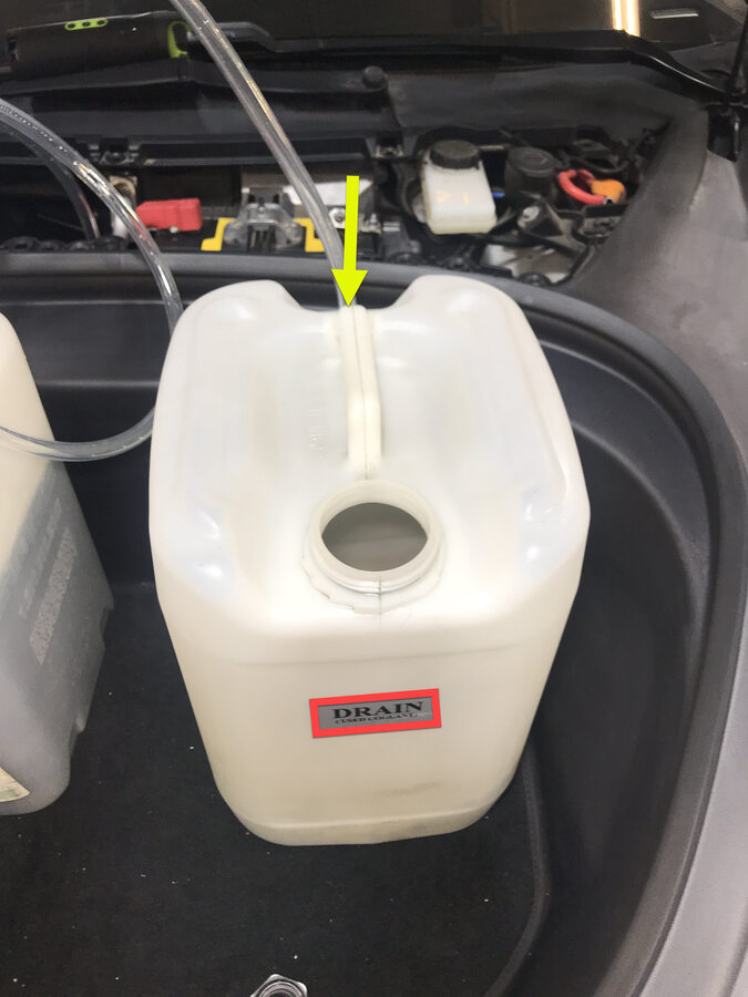 - Place filled coolant container into front storage area