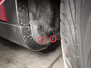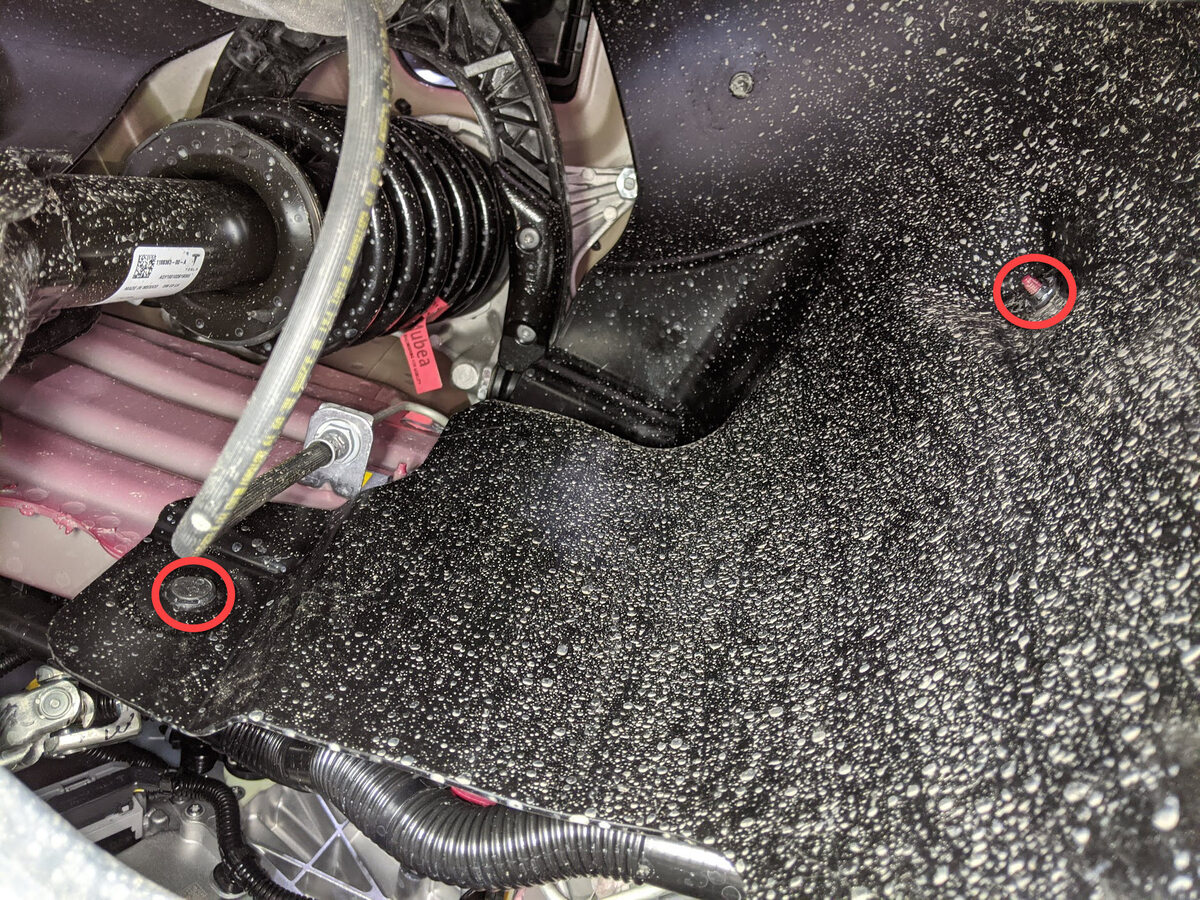 Remove foam plugs to access RH front inner HV battery bolts