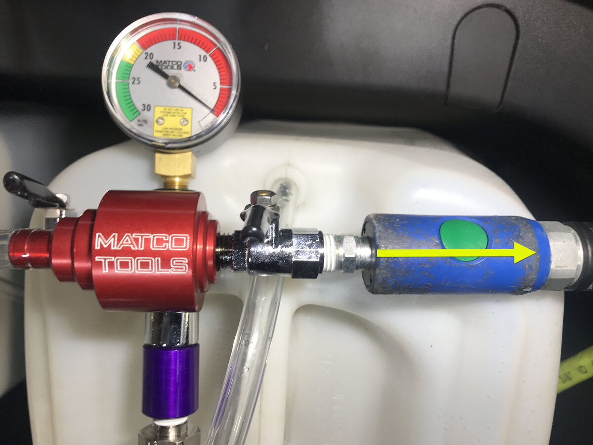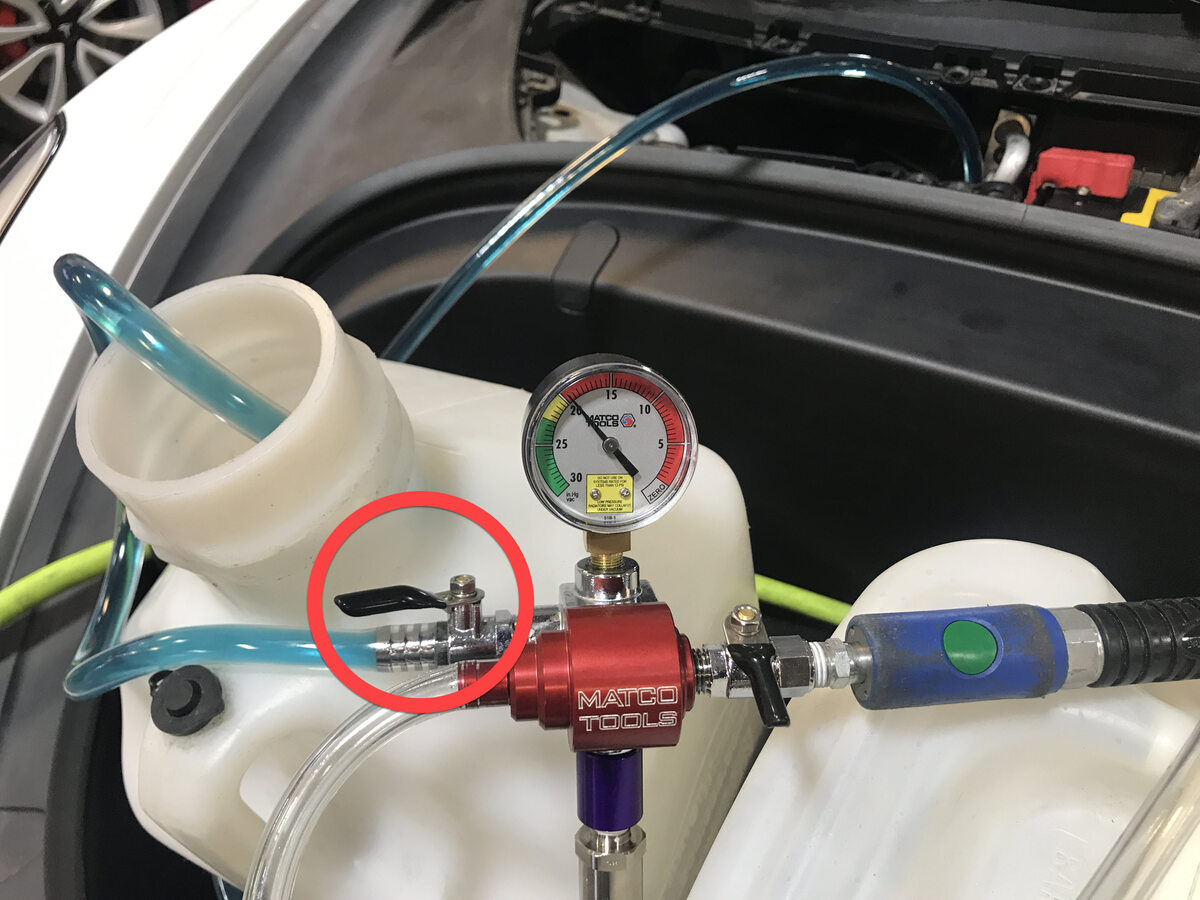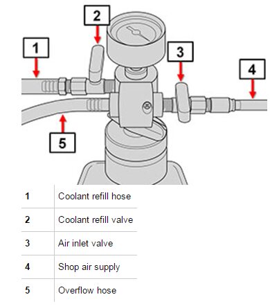 - Disconnect shop air supply from coolant refill tool