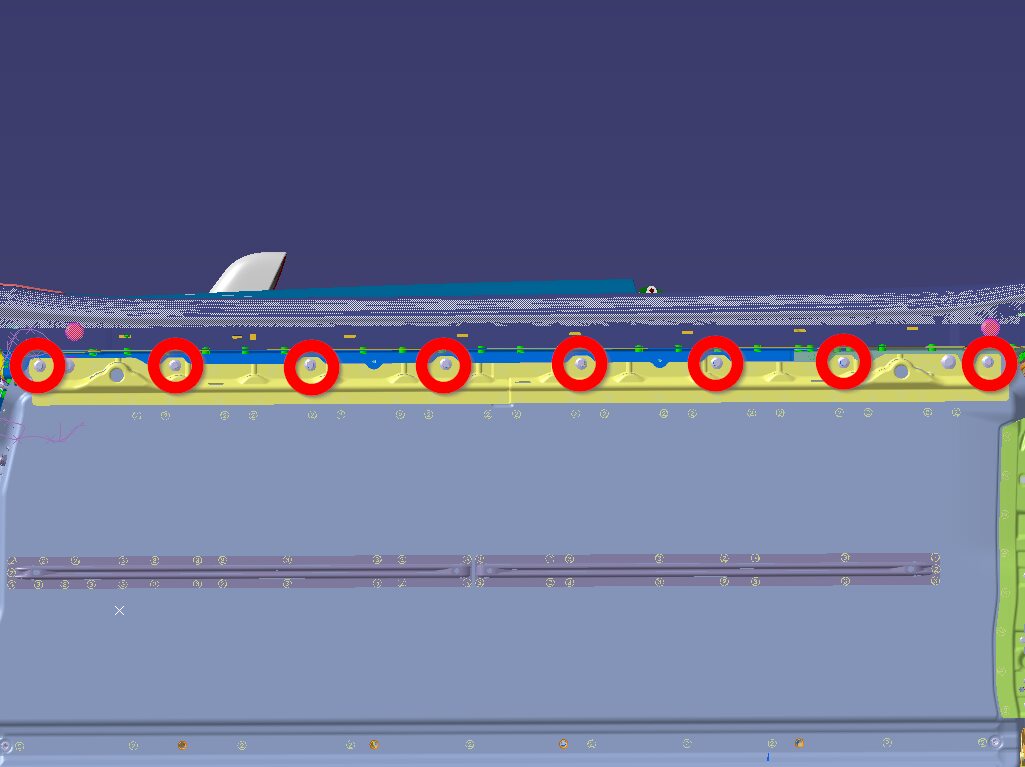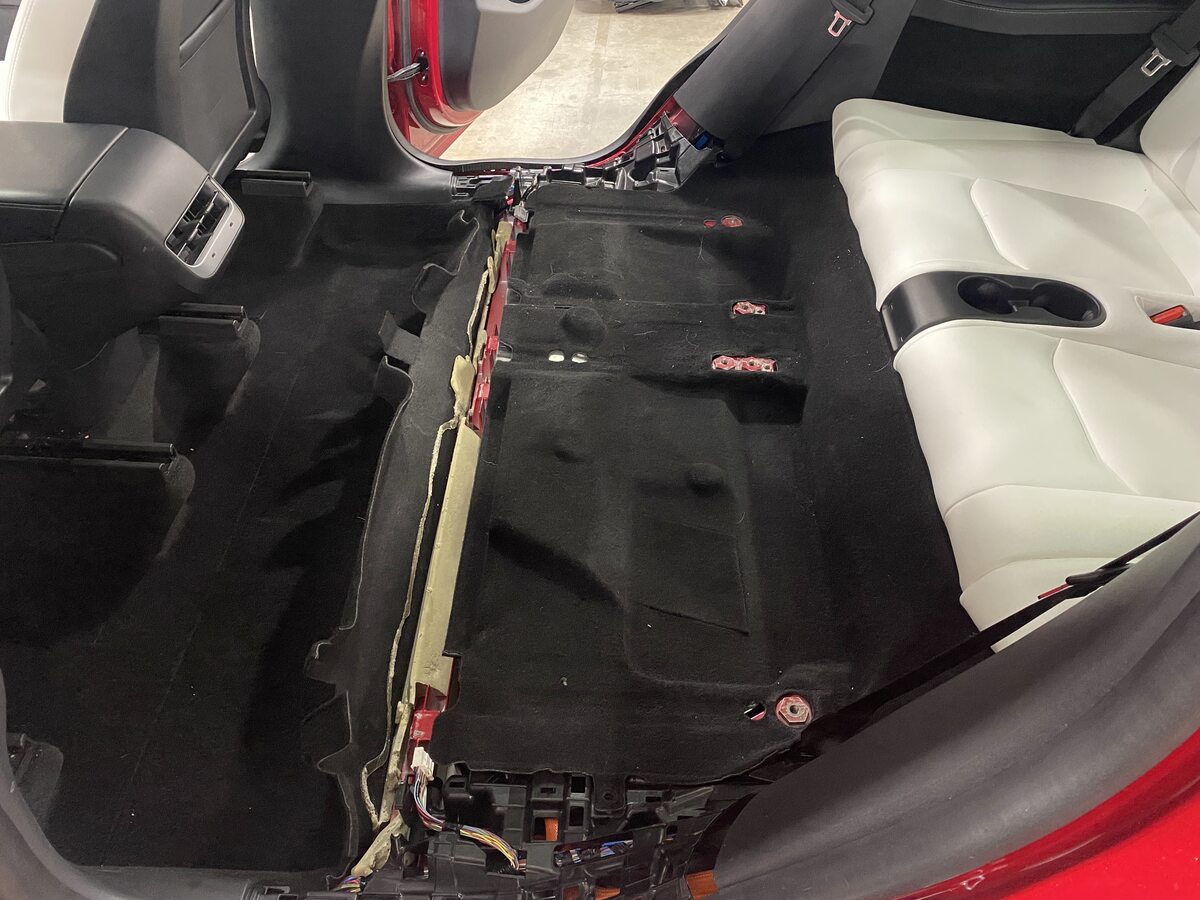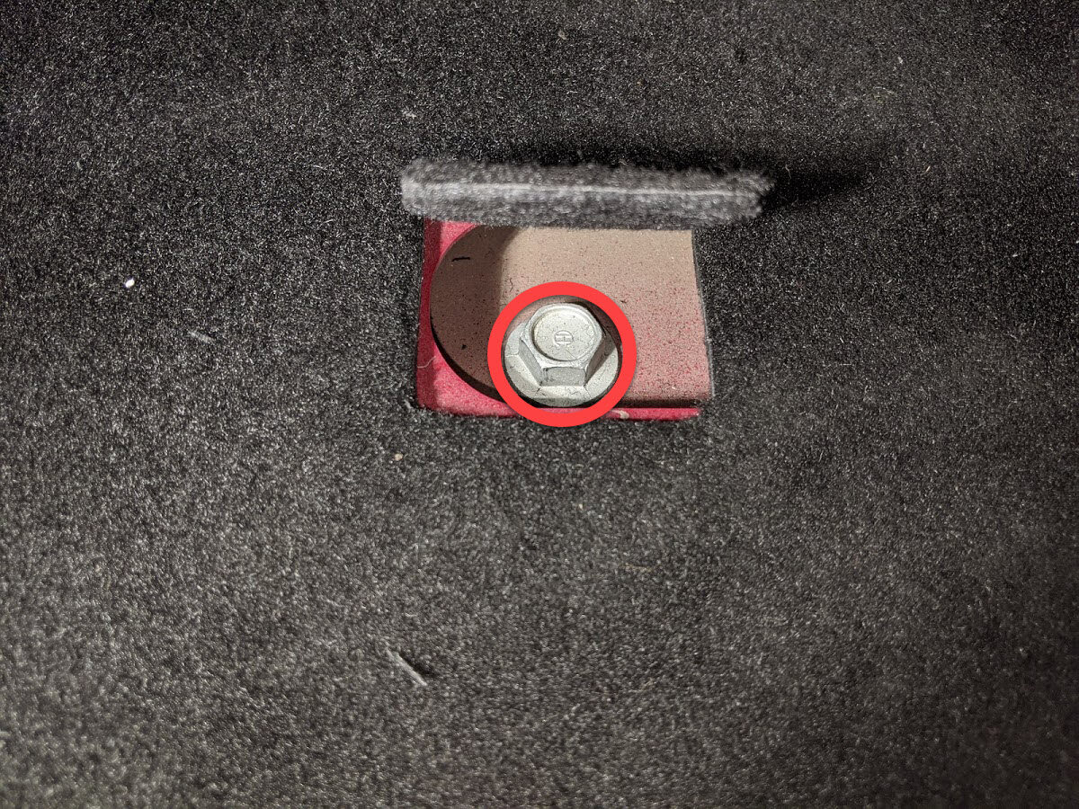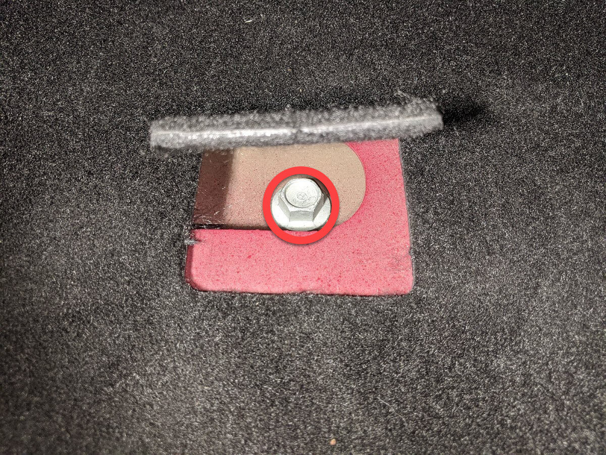 Separate carpet perforation below RH front seat to access RH middle inner HV battery bolt