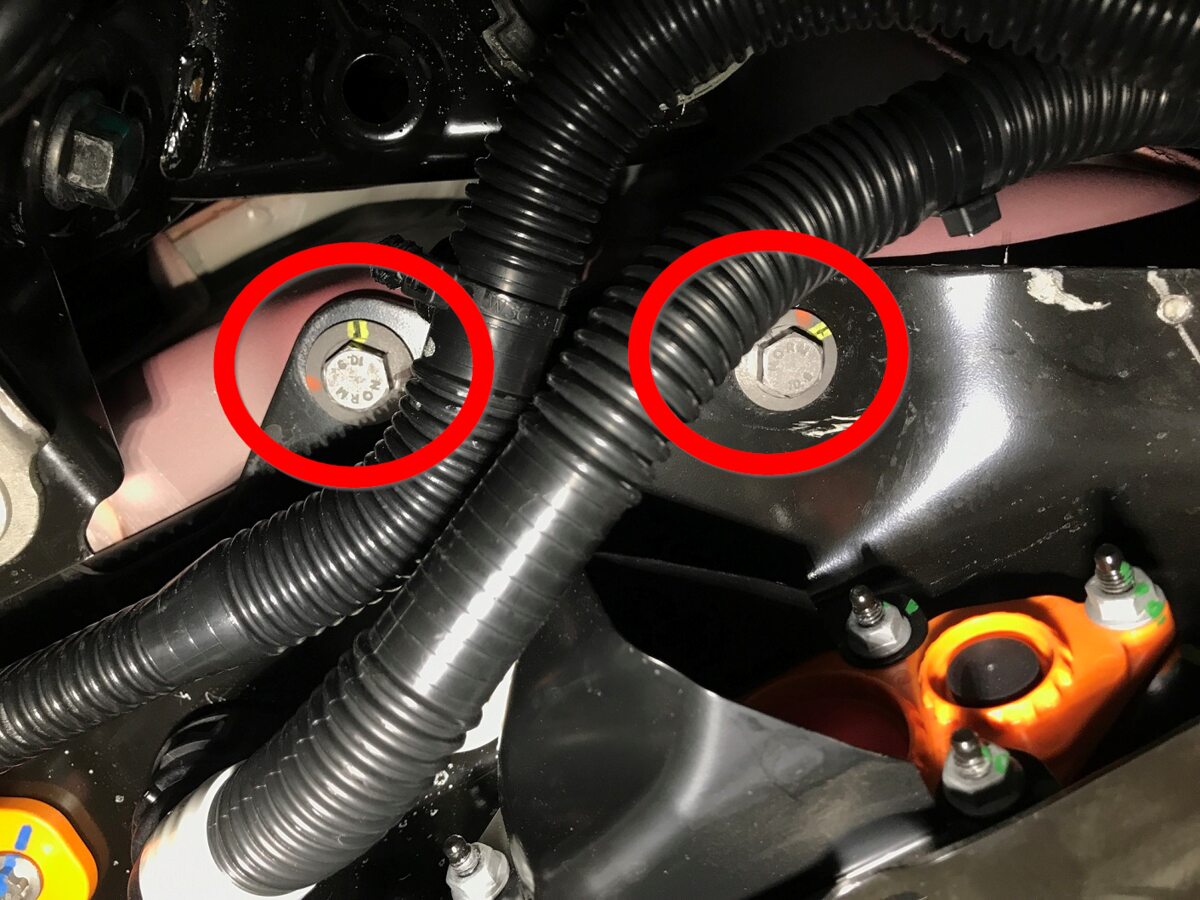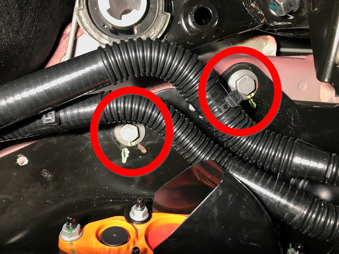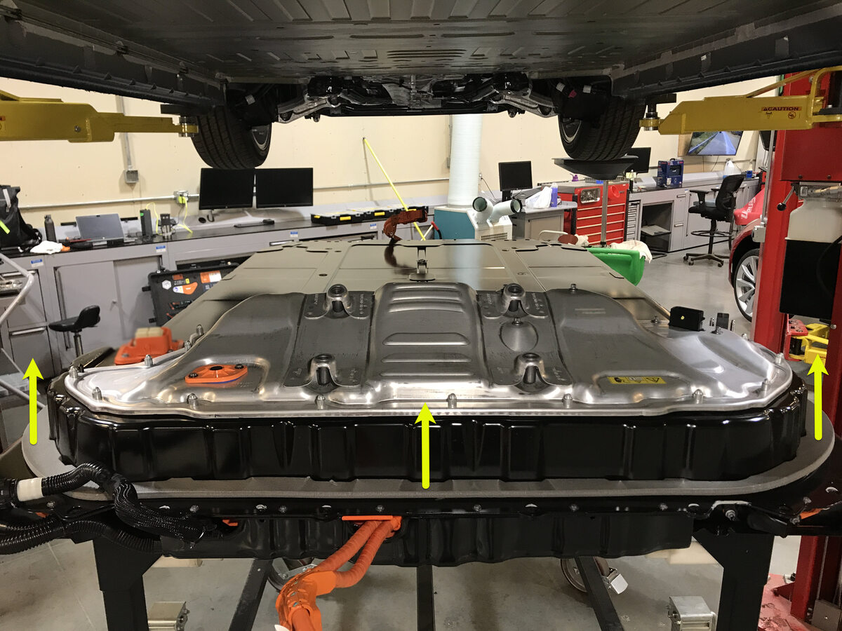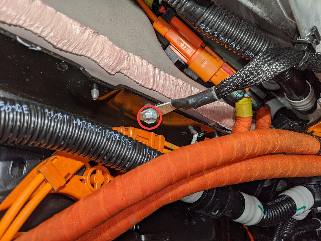 Torque both RH forward HV battery bolts