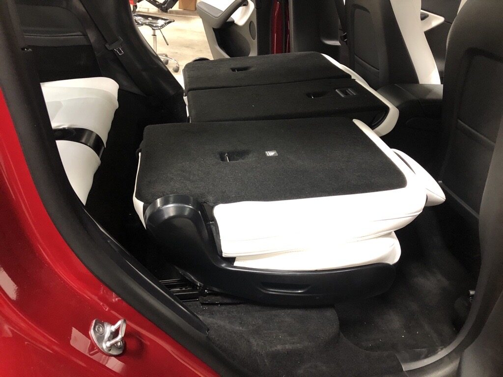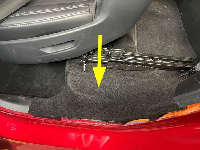 - Remove 2nd row floor mat from vehicle