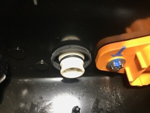 Release the tabs on the LH flood port and push the flood port up