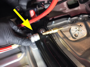 Remove plugs and connect RDU inverter inlet hose to rear of HV battery