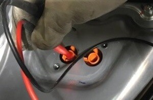 - Remove rear battery enclosure skid plate from HV battery pack
