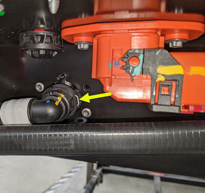 Disconnect RDU inverter inlet hose from rear of HV battery and plug both ends