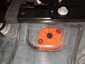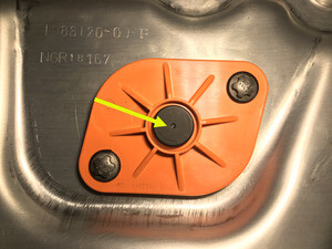 Install the outer portion of the LH flood port onto the battery pack