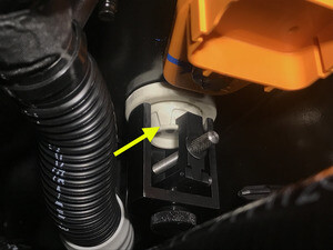 - Install the clamp on the inner portion of the LH flood port, above the lip