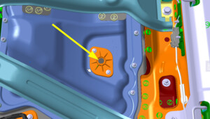 Install LH side hose clip to HV battery rear skid plate enclosure