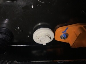 - Insert the inner portion of the LH flood port and twist until the tangs on the flood port align with the battery pack