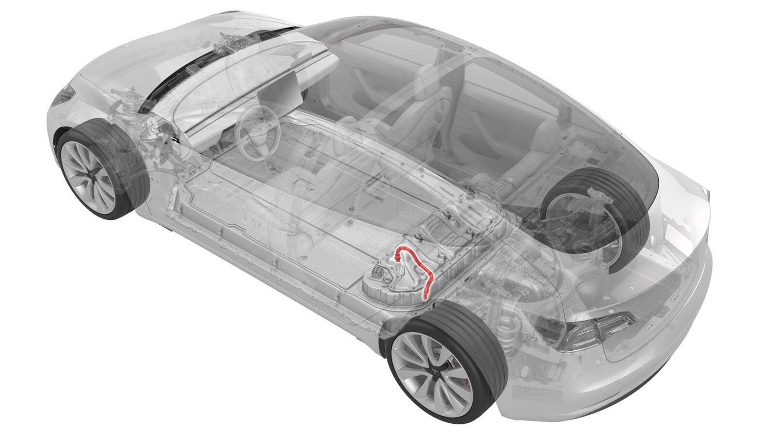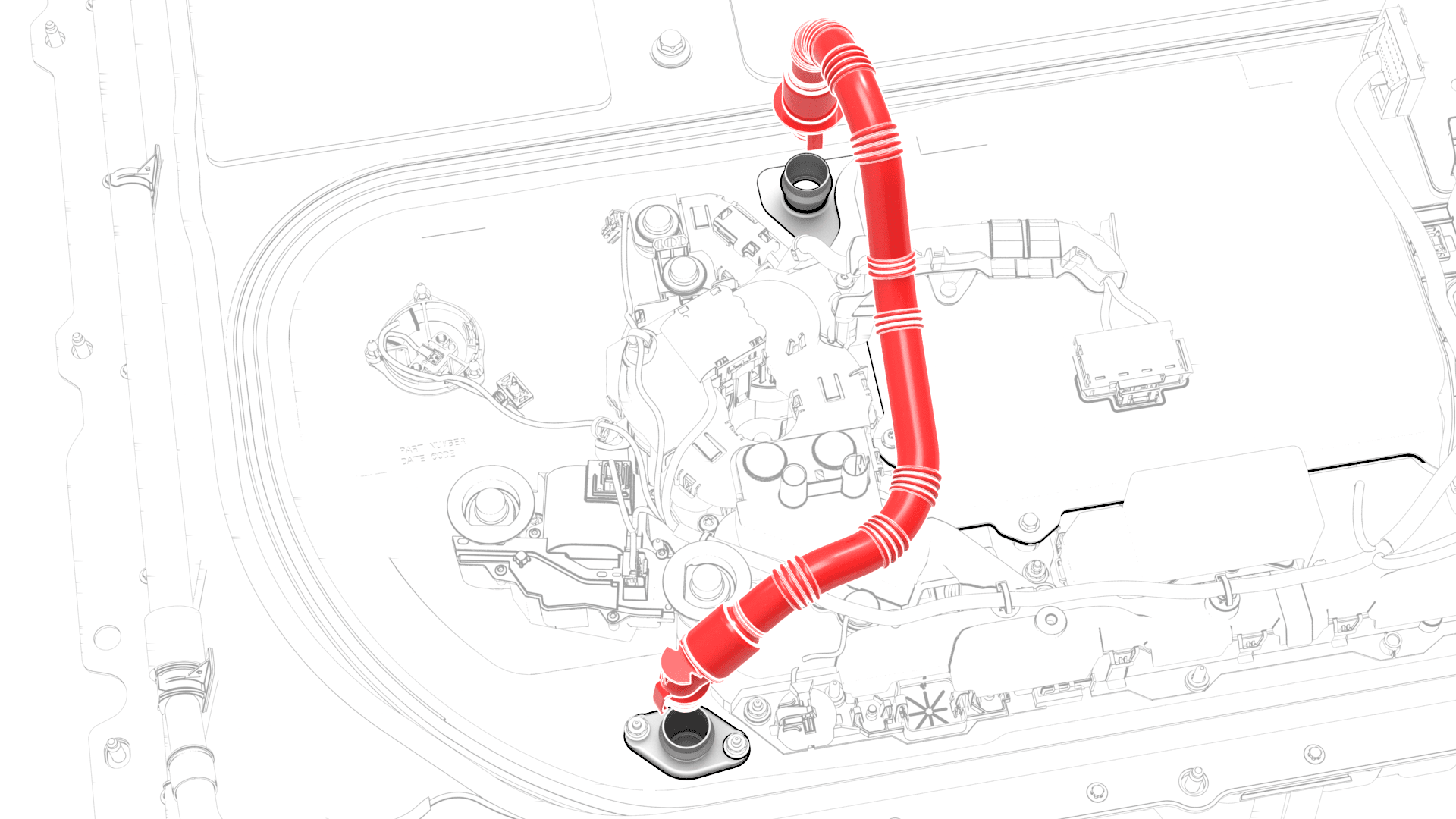 - Install the coolant output tube into the power conversion system and the battery flange.