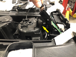 - Slide the 3rd row USB hub downward into the 3rd row seat cushion assembly.