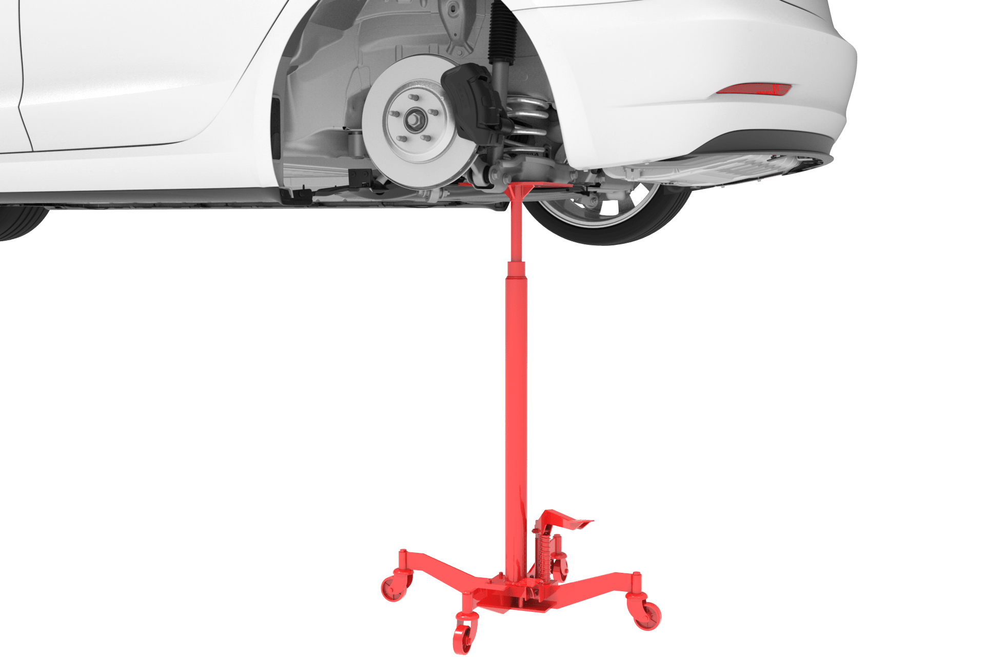 - Position a support stand underneath the LH lower rear control arm, and then raise the support stand to simulate vehicle at ride height.