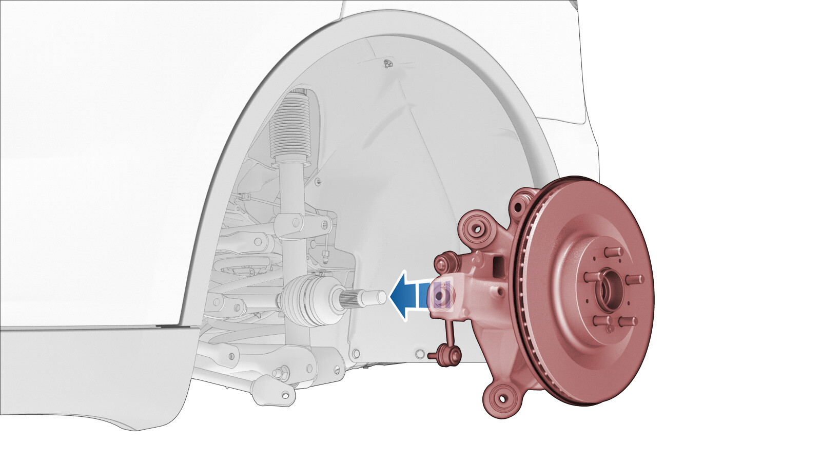 - Pull on the inner halfshaft cup to confirm that the circlip is locked into place. If the halfshaft detaches from the drive unit then reinstall the halfshaft and then test that it is fully seated.