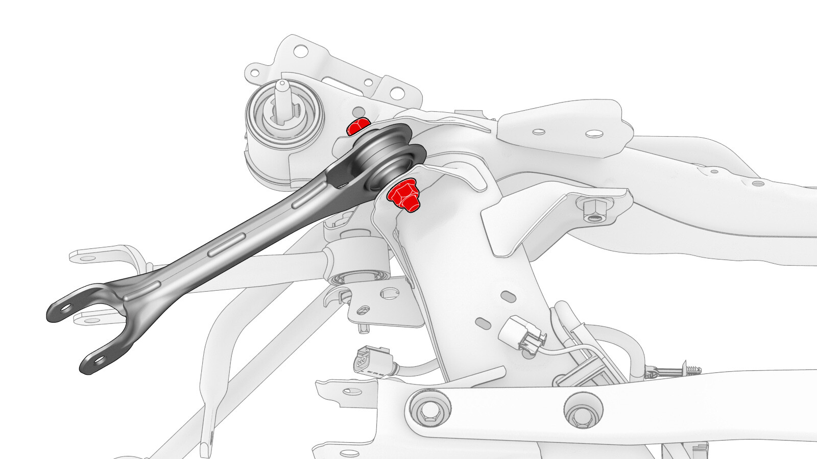- Install and hand-tighten the bolt and nut that attach the RH rear upper aft link to the RH rear suspension knuckle.