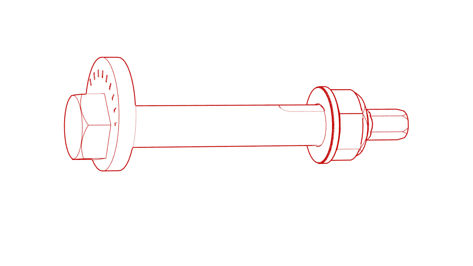| Bolt and nut that attach the RH rear upper fore link to the knuckle |