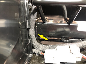 - Release the 3rd row seat frame harness from the inner B-cover on the LH side.