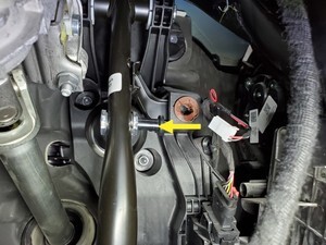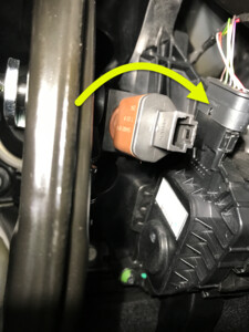 NoteConfirm that the brake pedal is in the home position, iBooster and Brake Pedal must be assembled together for brake light switch to be installed, Push the brake switch into the clip until it stops (don't push so hard as to move the brake pedal), Twist clockwise 45 degrees to set the brake switch, Make sure brake switch connector facing RH side of vehicle with connector pins vertical