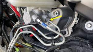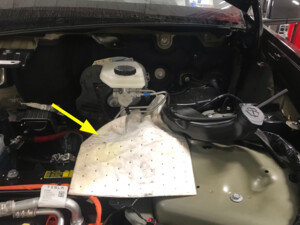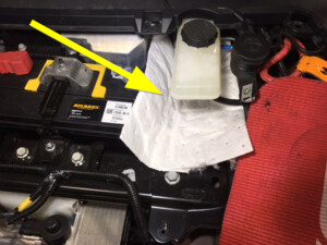 - Place absorbent material underneath brake booster and reservoir area