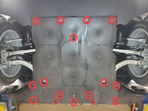 Apply Loctite 222 onto front aero shield bolts and install fasteners securing front aero shield to vehicle