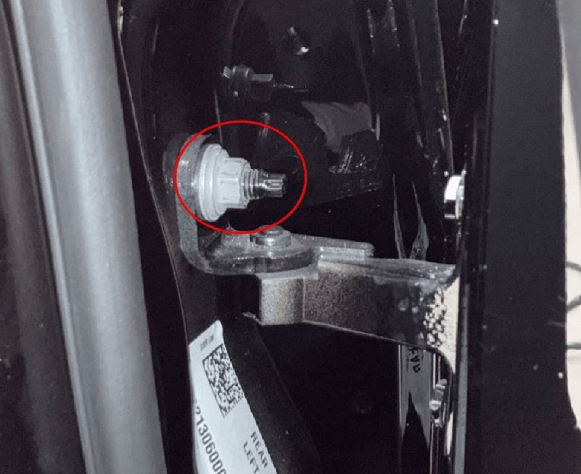 - Use the alignment tape to position the LH rear door upper hinge onto the door, and then hand tighten the bolt or nut that attaches the hinge to the door.