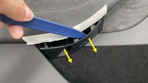 - Use a plastic trim tool to gently remove the bolt cover from the trim panel.