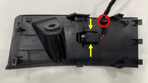 - Remove the connector (x1) from the trim panel and release the ambient module from the clips (x2).