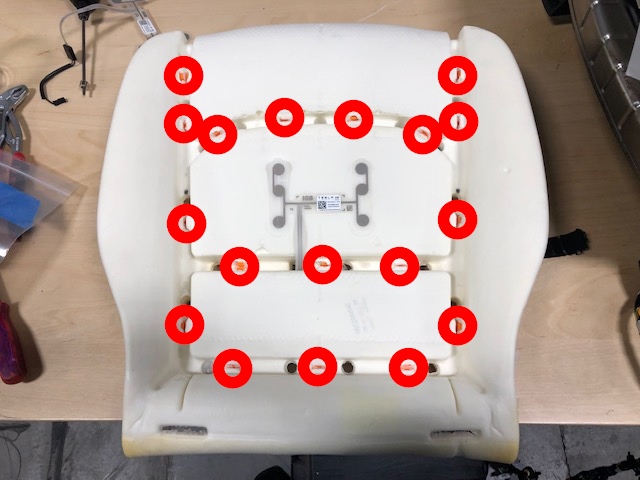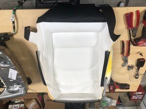 - Remove the clips (x18) that attach the seat cushion trim to the foam pad, and then remove the trim from the foam pad.