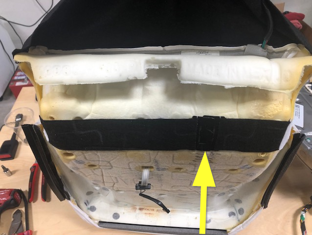 - Release the clips (x2) that attach the seat cushion foam to the seat suspension.