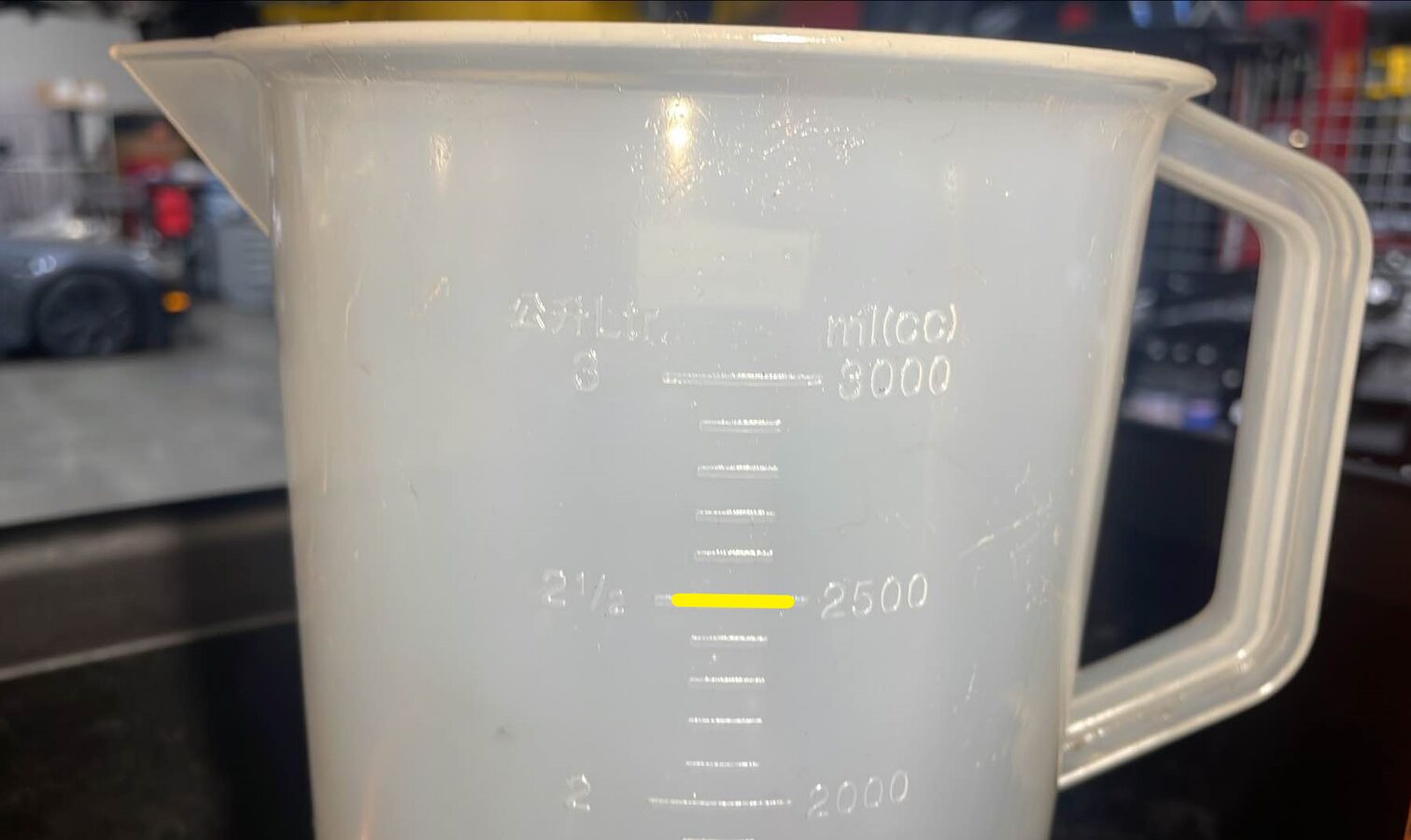 Fill a 3000mL measuring container with