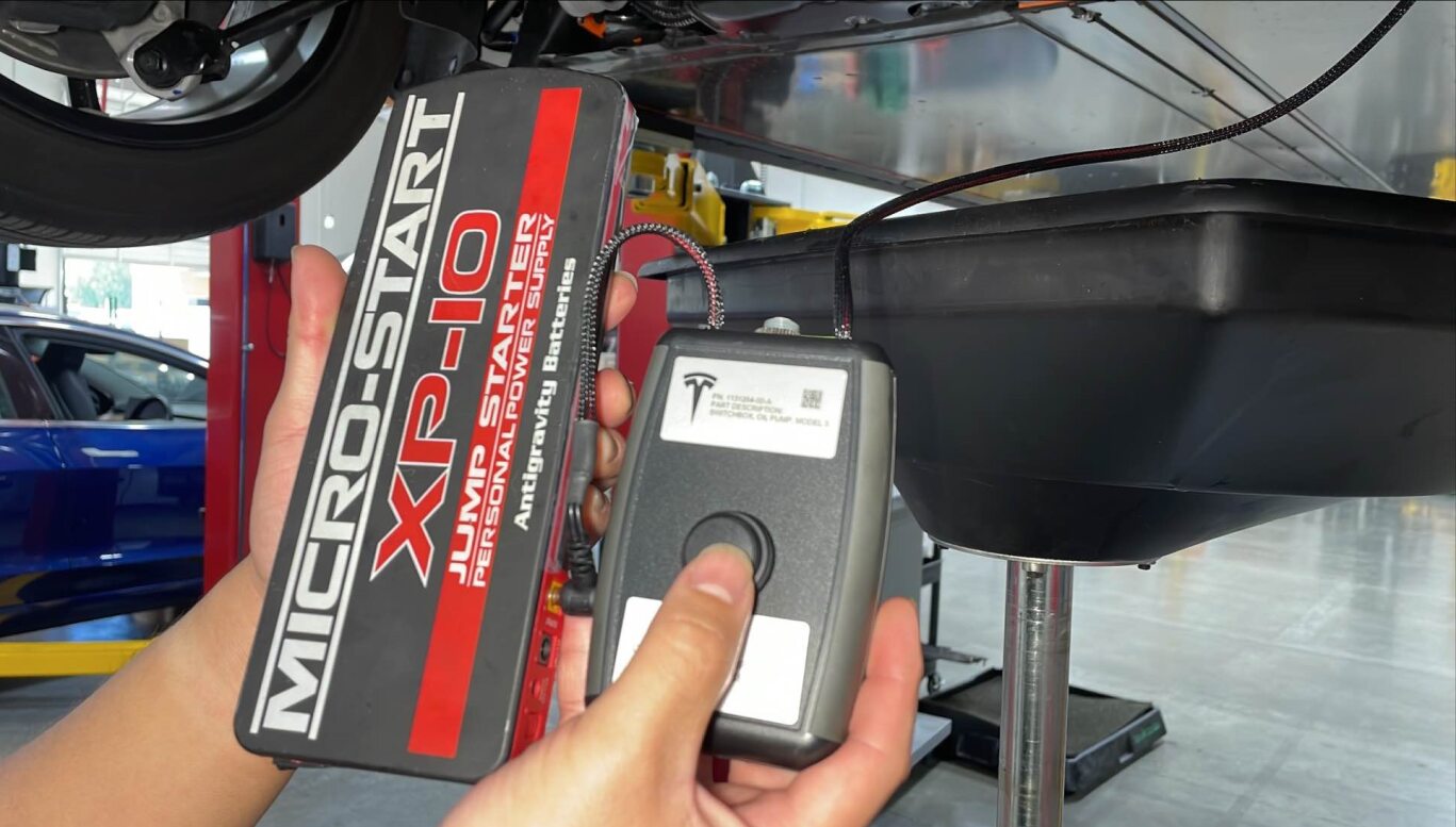 - Connect the jump pack 12V power supply to the oil pump switchbox harness.