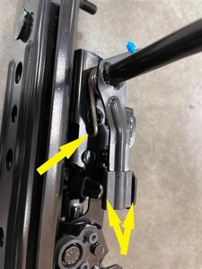 - Install the groove on the LH 2nd row seat podium to the inner seat track, and then align the groove on the podium to the outer seat track. Engage the towel bar with one hand, and then move the outer seat track inward until the groove on the podium engages to the seat track.