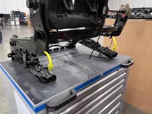 - Starting at the rear of the seat, position the LH 2nd row seat pan onto the seat frame.