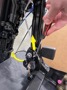 - Use a pick to manually move the LH 2nd row seat into easy entry position.