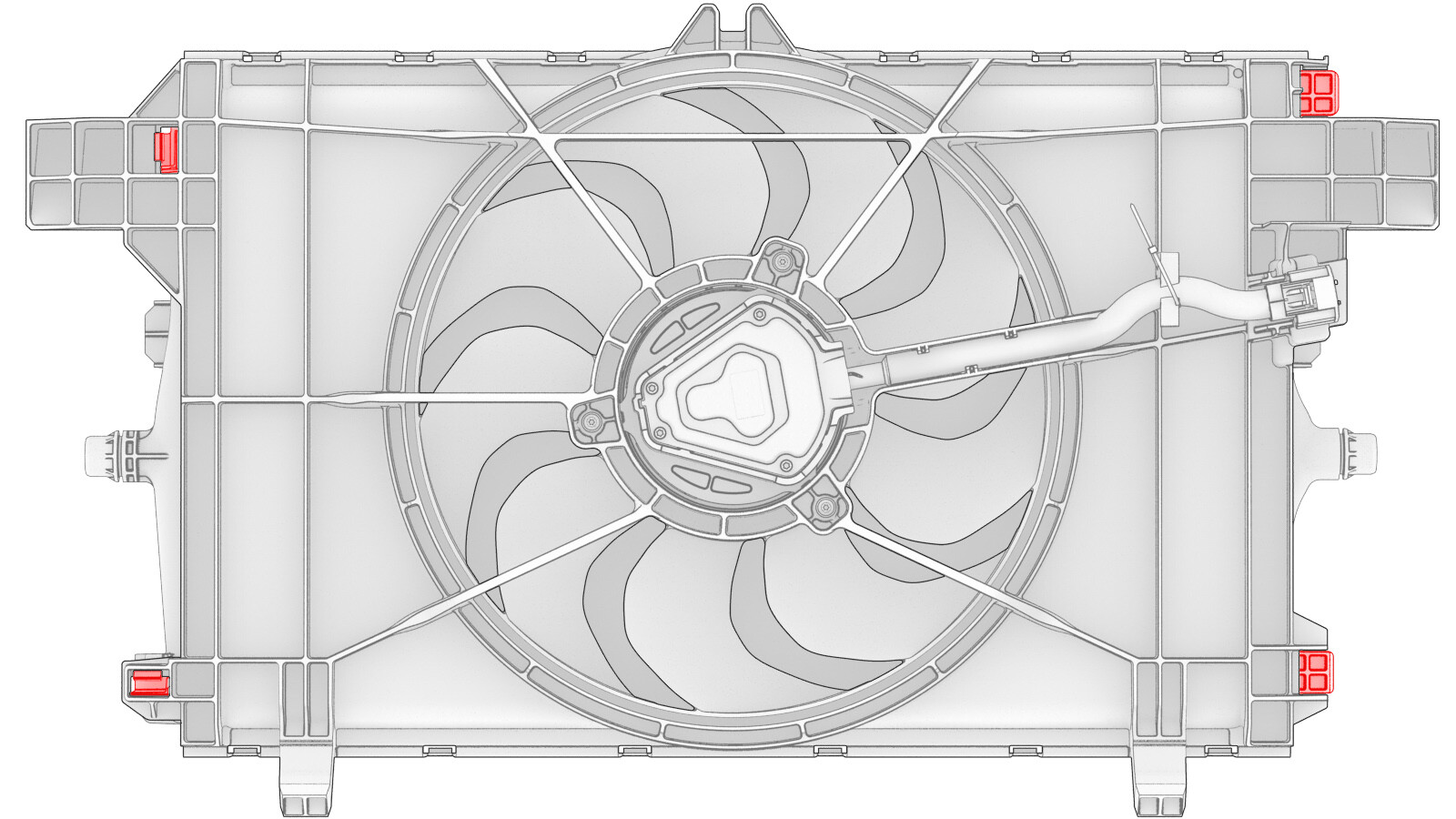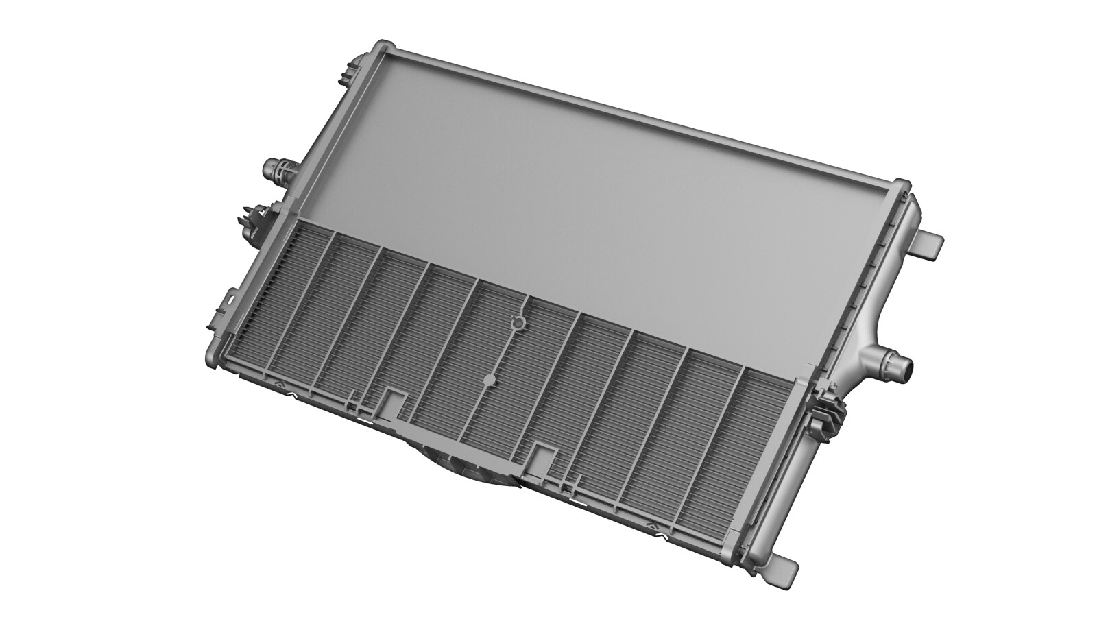 - Release the locking tabs that attach the radiator to the fan and shroud assembly, and then slide the radiator out of the holding mounts.