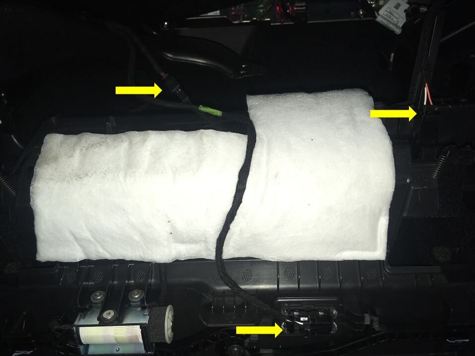 - Peel back NVH pad near USB harness clips