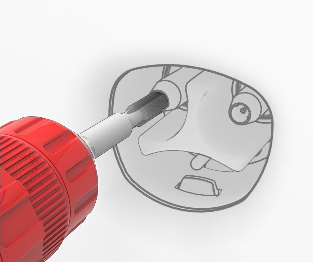 - Lightly pull on the charge port pin deadfront and spin the drill clockwise to shear the charge port pin deadfront retention ring off, and then remove the deadfront from the charge port pin.