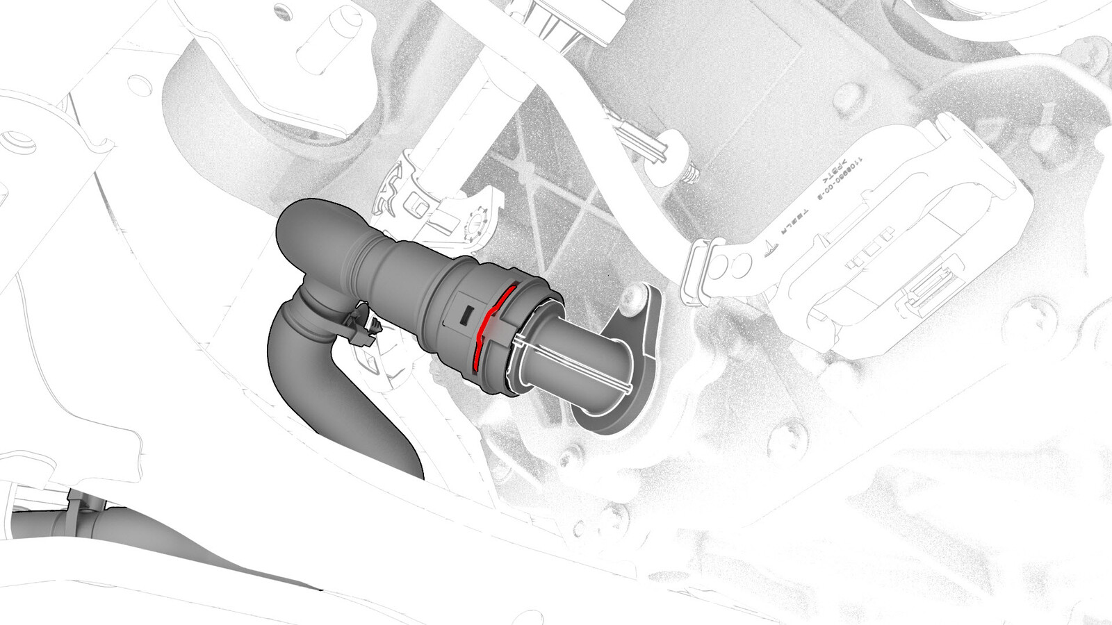 - Remove the plug, and then connect the rear drive unit inverter inlet tube to the 55 degree fluid coupling.