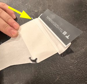 - Gently pull the paper back to release the upper portion of the wax paper from the VIN label, and then press down on the upper portion of the VIN label to secure it to the VIN label bracket.