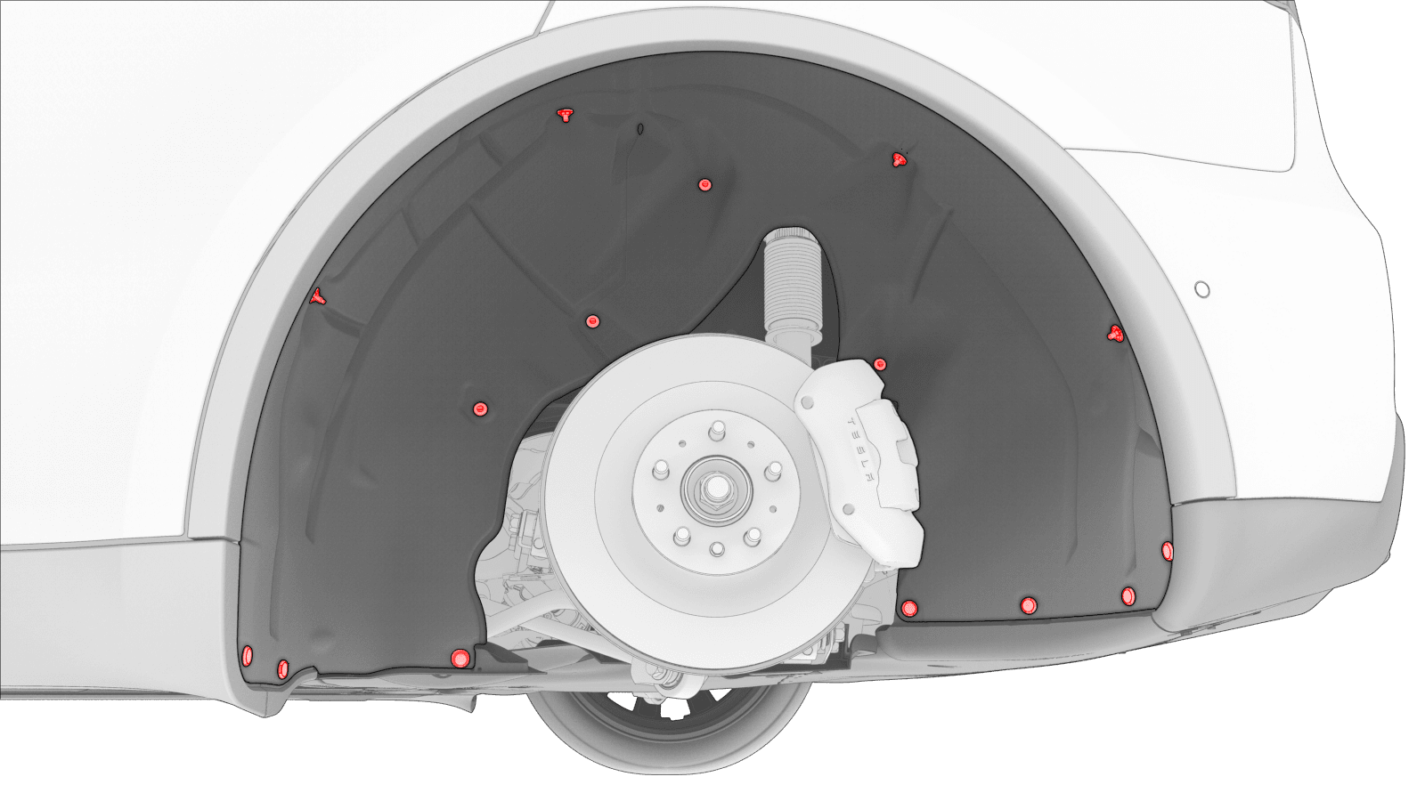 - Release the clips (x16) that attach the LH rear wheel arch liner to the vehicle, and then remove the liner from the vehicle