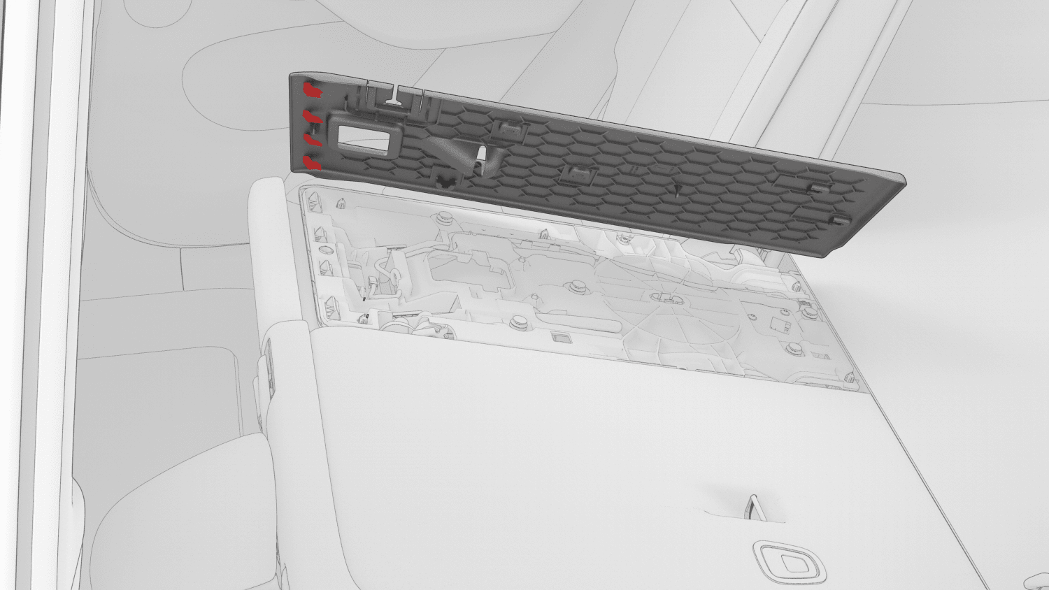 - Use a trim tool to release the clips that attach the center back panel to the seat, working from the bottom of the seat towards the top.