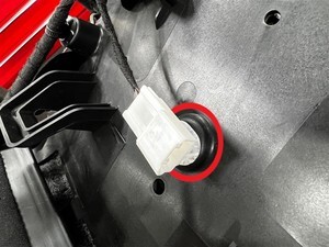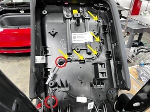 - Secure the fir tree clips (x2), and then secure the shoulder switch harness to the harness guides (x5) on the upholstery support.