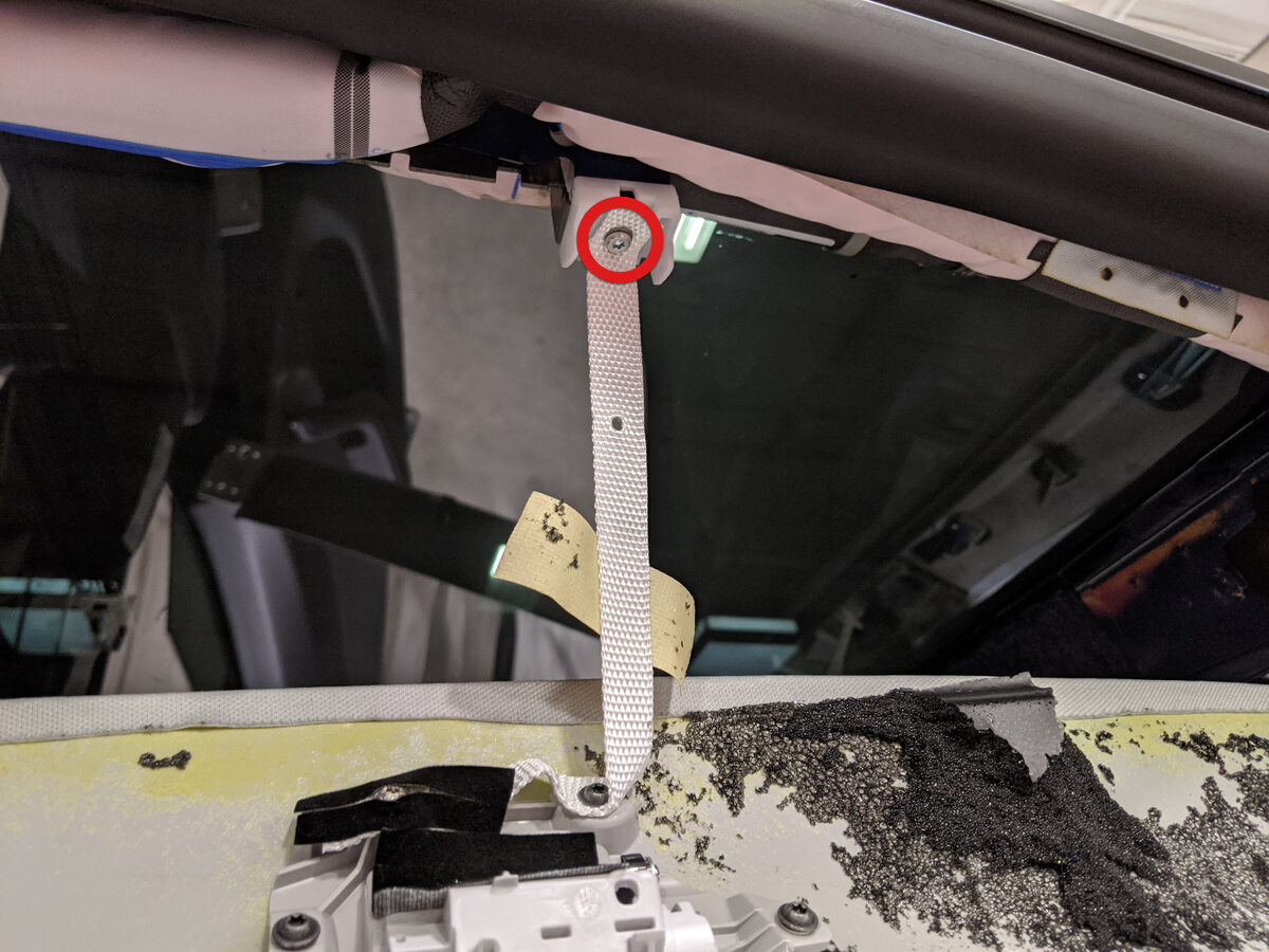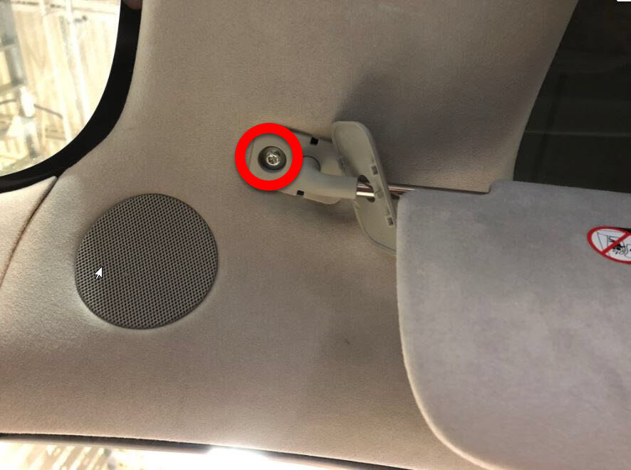 Note1x screw, T25, 3.5 Nm, Extending the sun visor may allow for extra working room