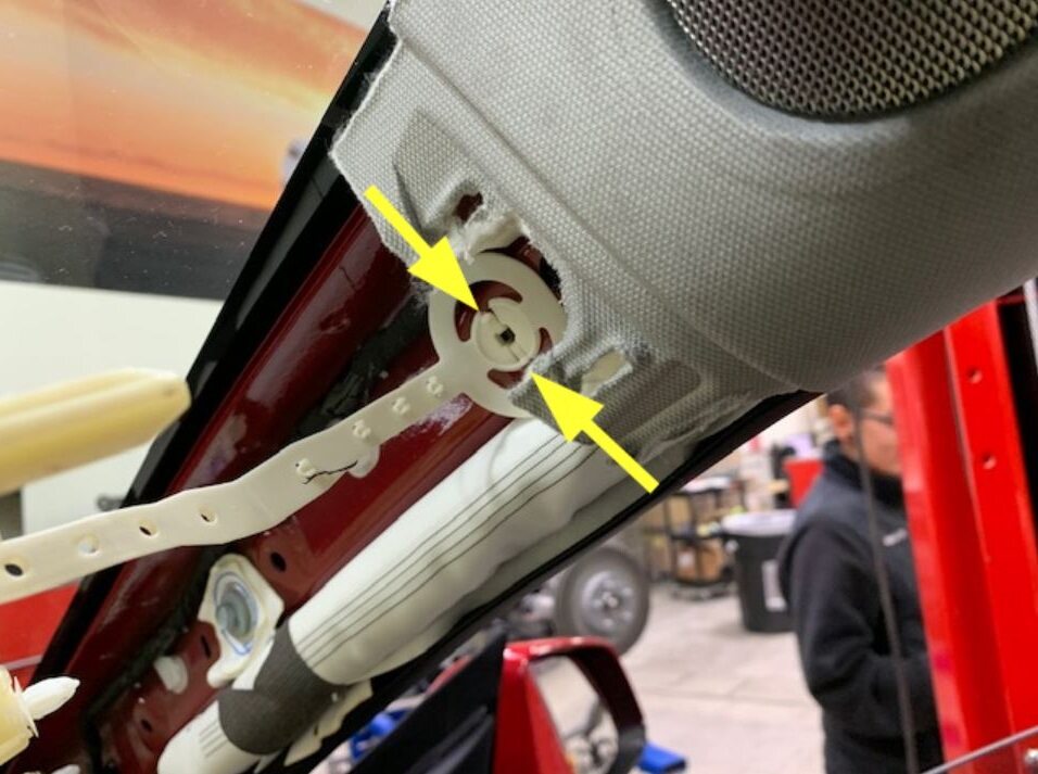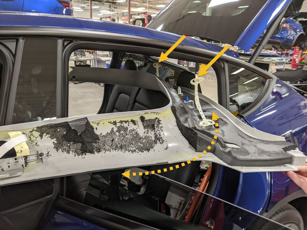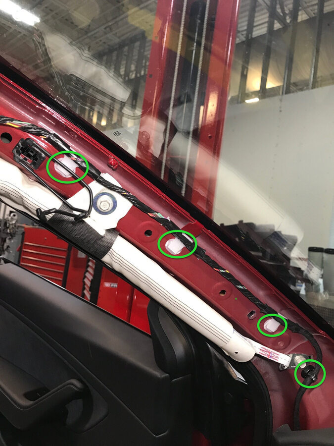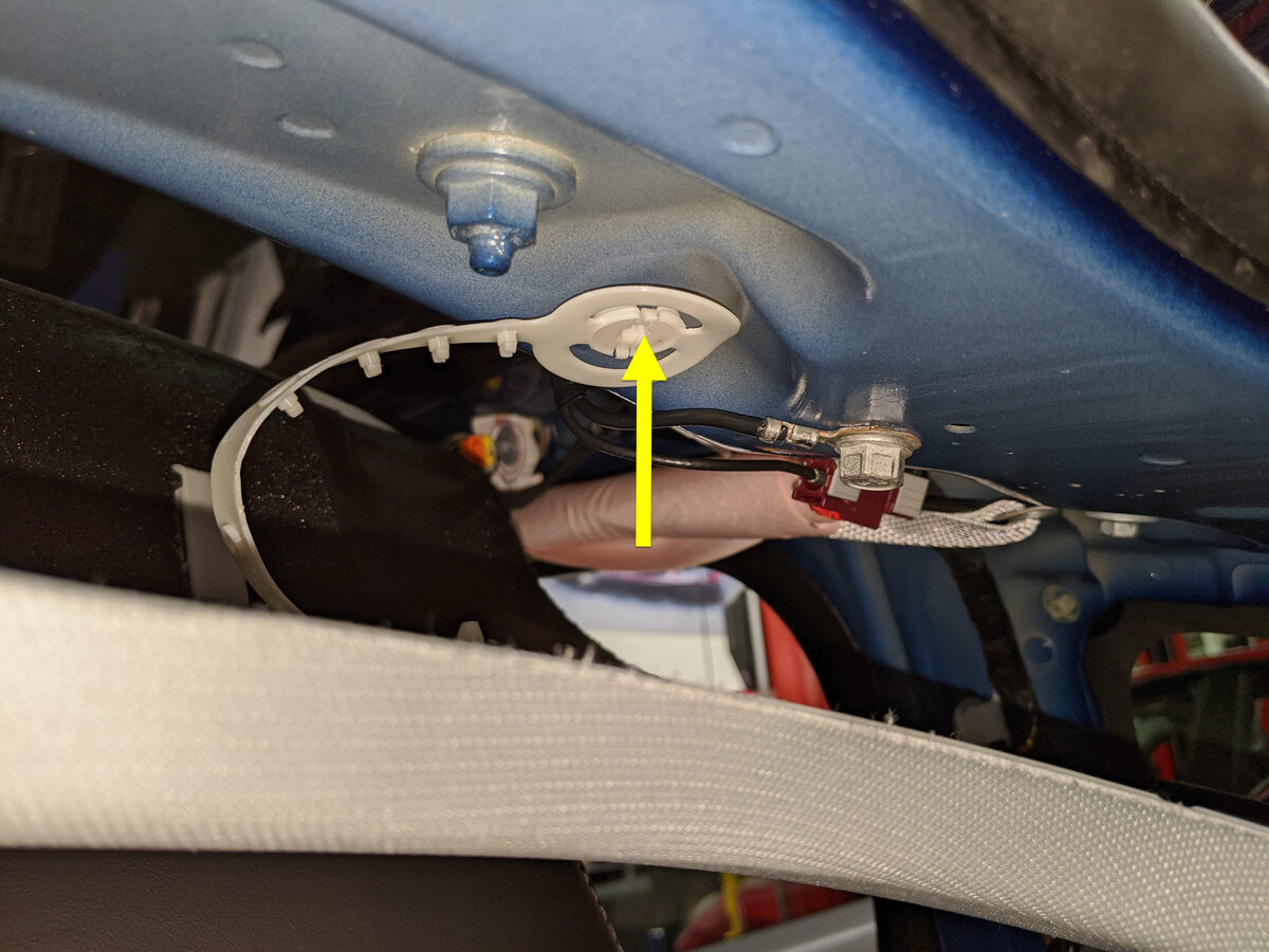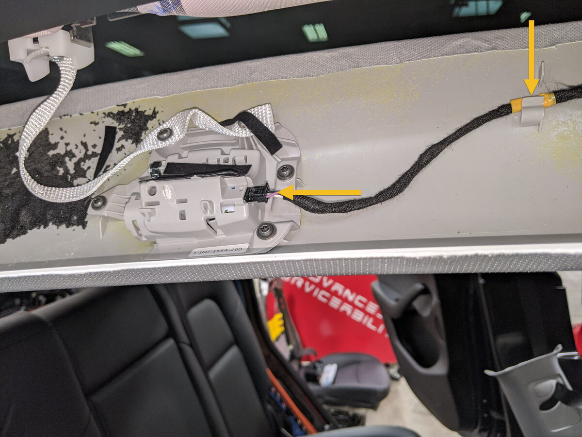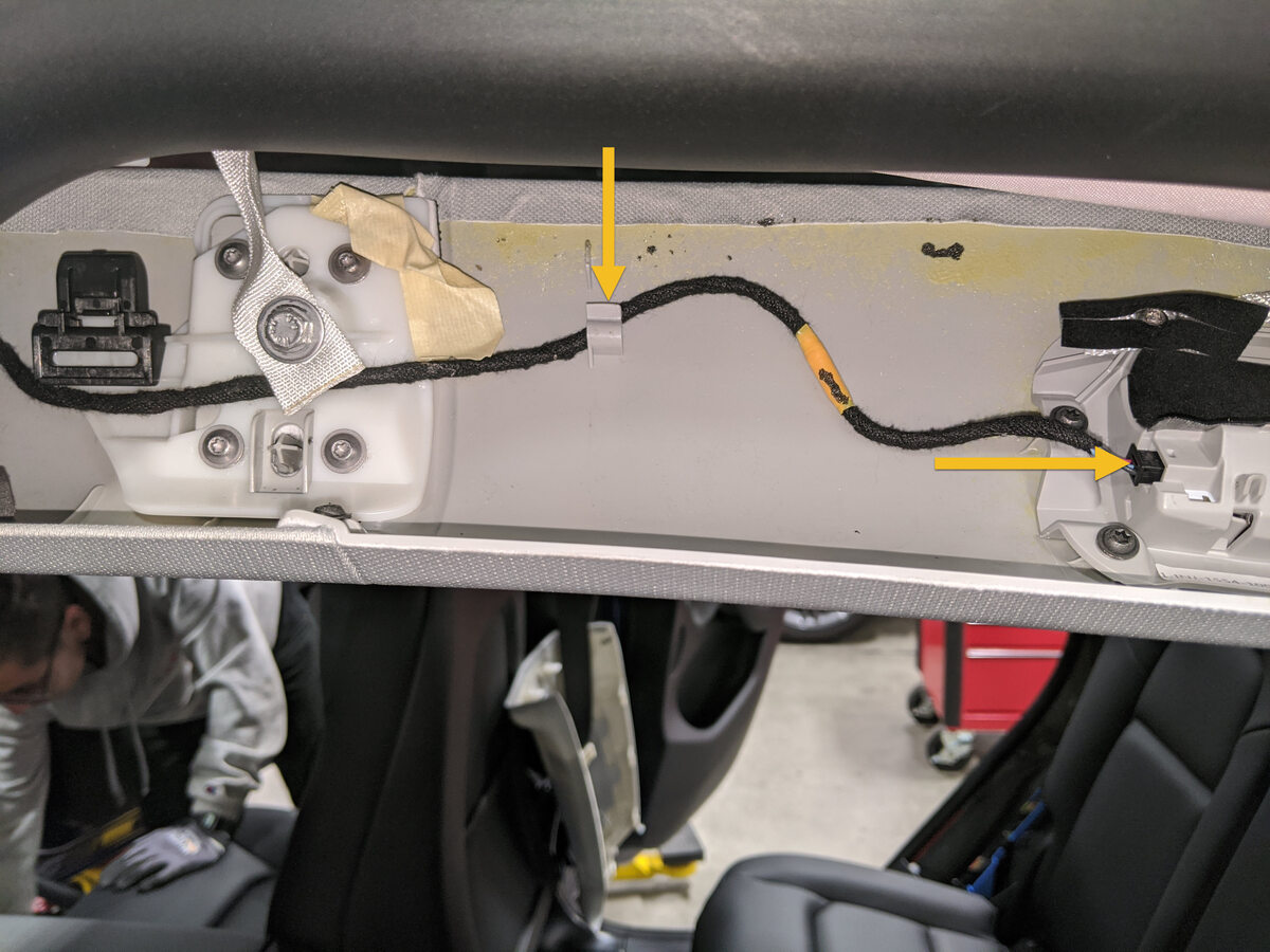 - Use the loop to support the headliner during installation. If the loop is too loose, tie an additional knot to reduce slack.
