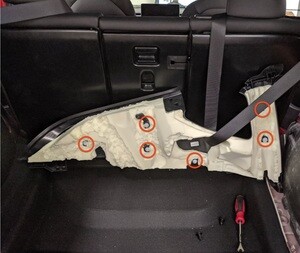Note10x screws, T20, 1.0 NmTip: The headliner shipping bag might be useful as a "third hand" for installation.