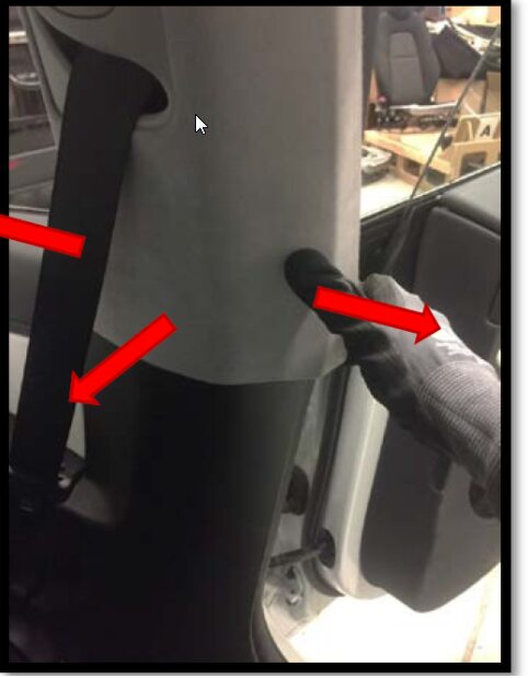 Note4x clips, Pull the bottom of the upper B-pillar toward inside of the vehicle then pull the top to release the remaining clips