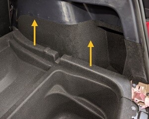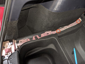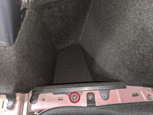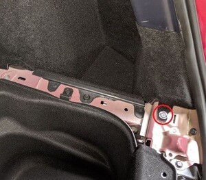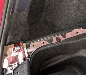 Connect 12V outlet and trunk switch connector and seat top edge of LH trunk side trim